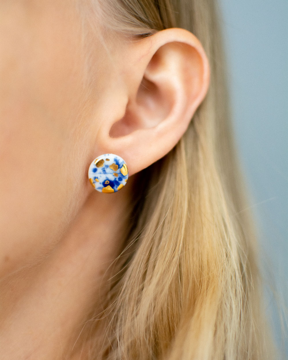 Kolczyki ręcznie wykonane z porcelany w pracowni na warszawskiej Pradze. Uformowane, wyszlifowane i szkliwione z największą starannością i czułością. Wypalone trzykrotnie w piecu ceramicznym w maksymalnej temperaturze 1250 stopni.