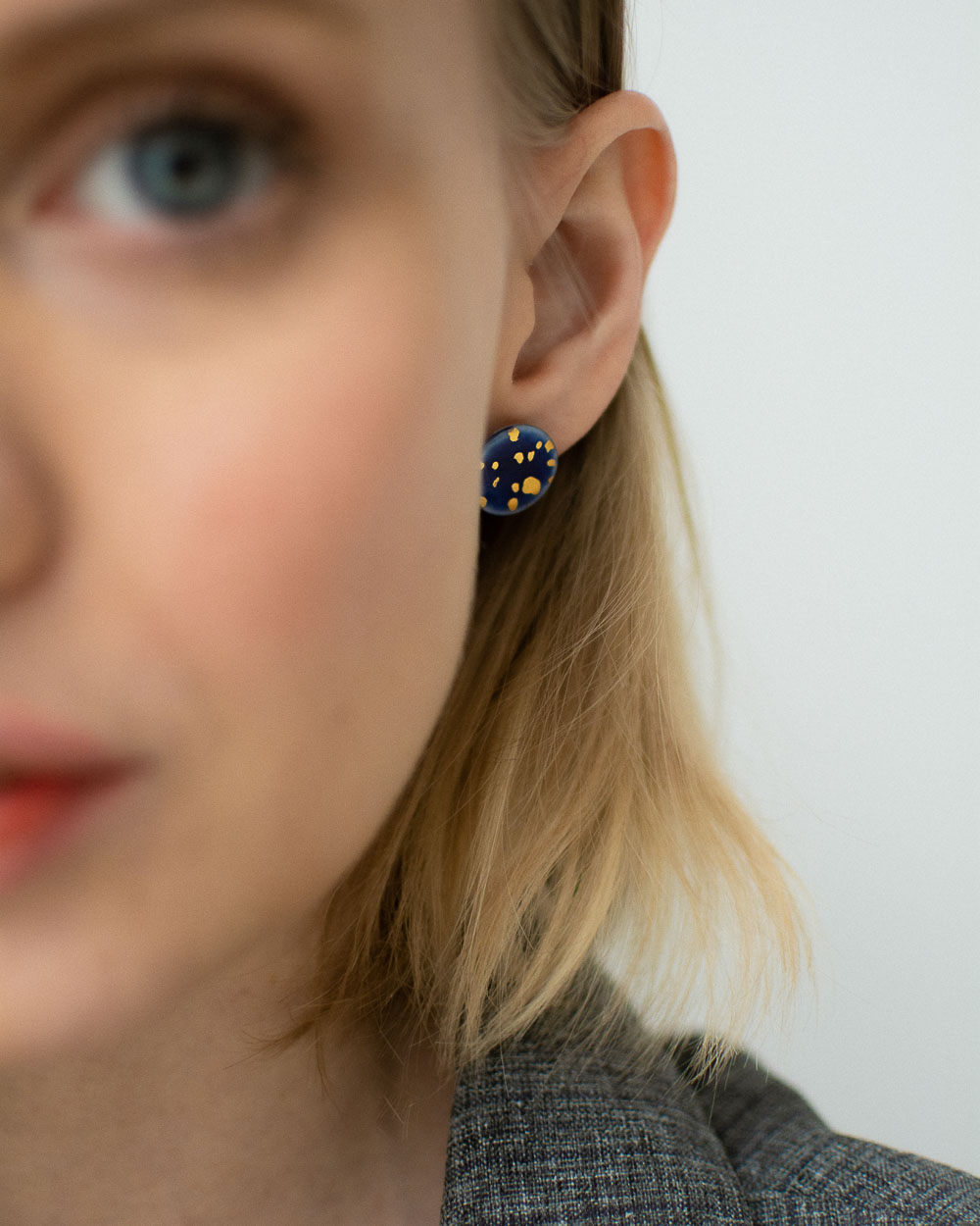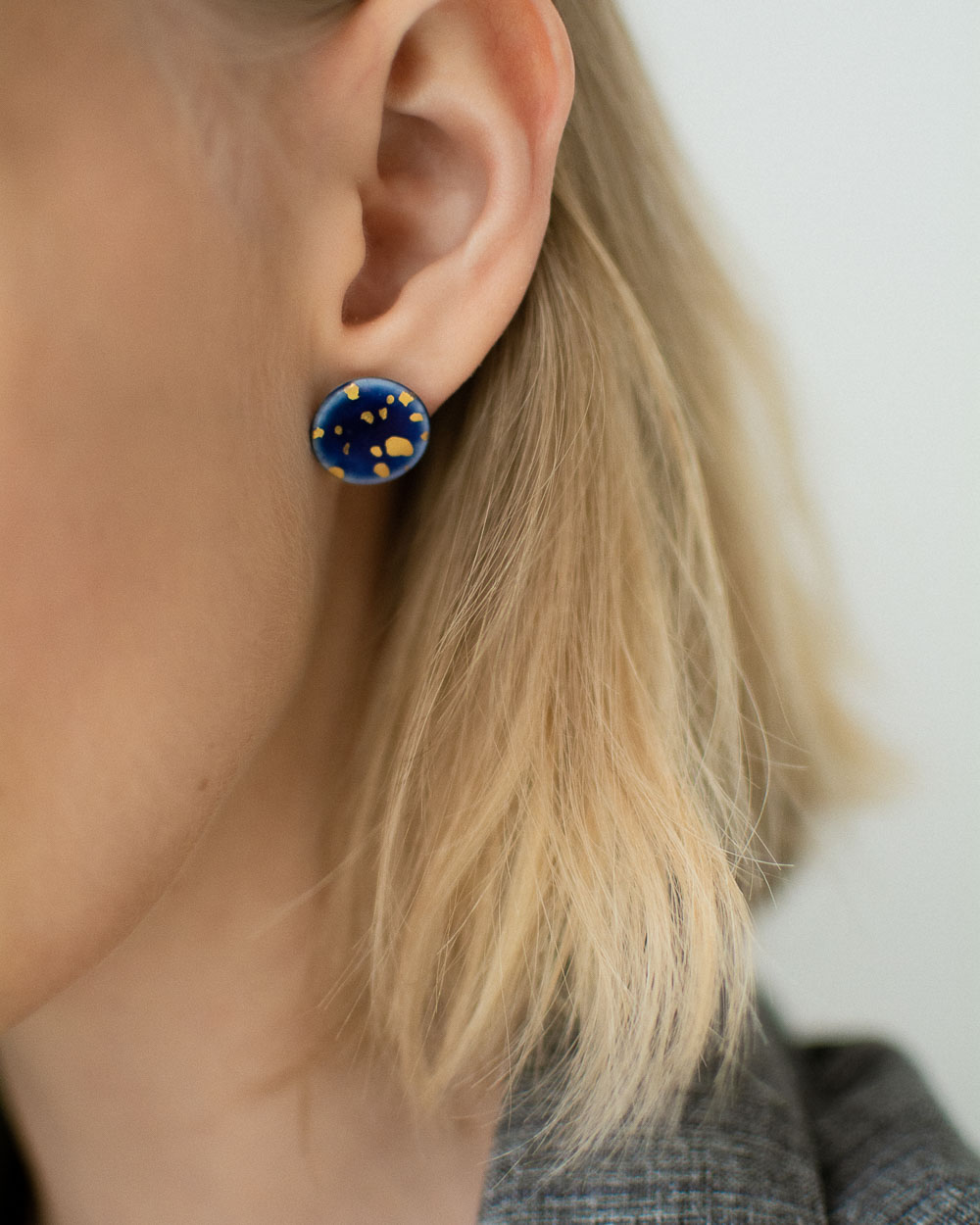 Kolczyki sztyfty, małe, kobaltowe, ZŁOTE PIEGI