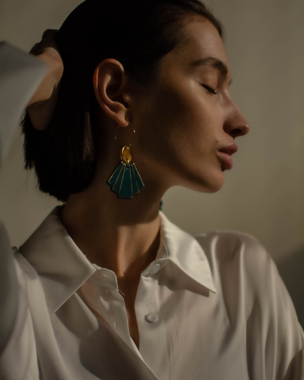 • Każda para kolczyków jest wyjątkowa – wykonano je ręcznie, dlatego mogą się delikatnie od siebie różnić.