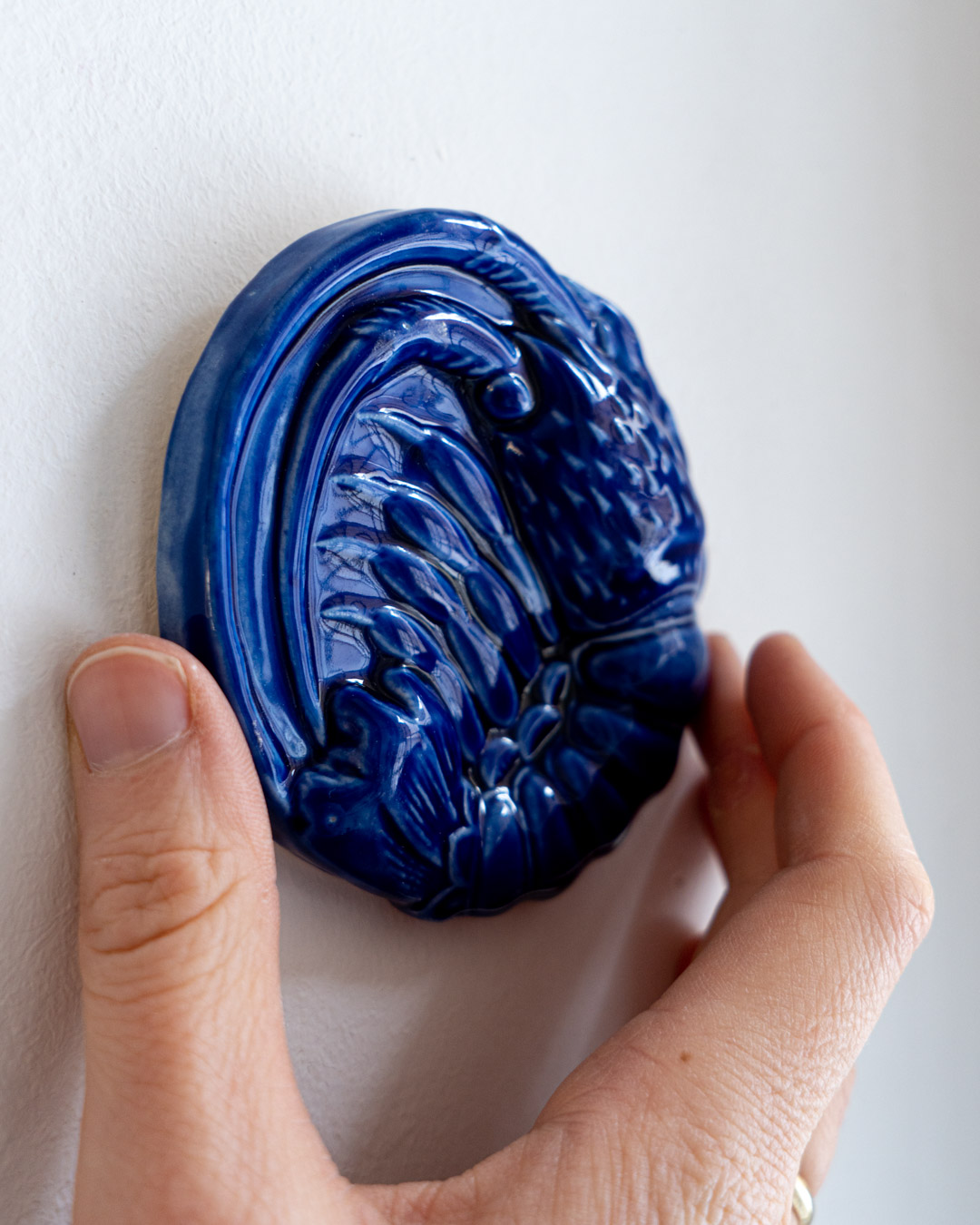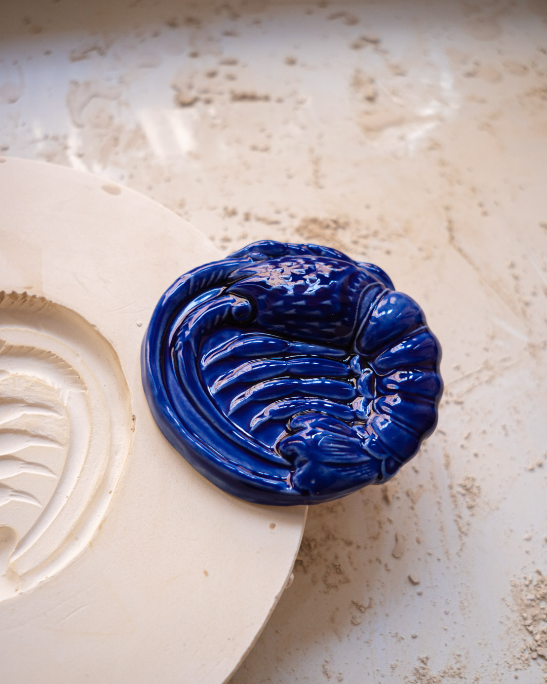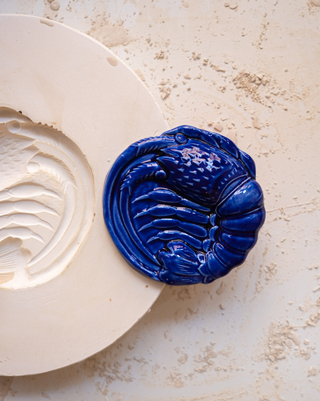 Now the turtle has its own plaster mold. It is born from it, then carefully retouched and glazed.
