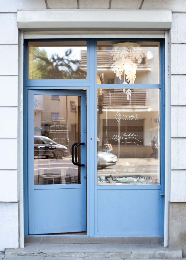 Moją biżuterię i naczynia możesz kupić też stacjonarnie. Lekką pracownię i sklep znajdziesz w samym sercu warszawskiej Pragi, na przeciwko centrum Koneser. Trafisz tam bez trudu – tych błękitnych drzwi z witryną wypełnioną ceramiką nie da się przegapić.